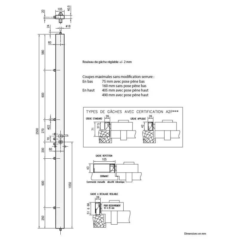 - Cylindre 1 entrée de clé et entraxe 60 mm pour une pose et une utilisation maîtrisées