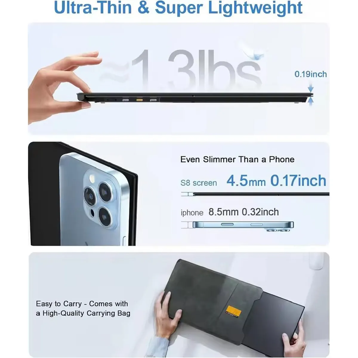 [Compatible avec plusieurs appareils] Compatible avec les ordinateurs portables de 13 à 17 pouces. Se connecte facilement à votre ordinateur portable sans accessoires supplémentaires. Les rallonges d'écran pour ordinateur portable ne sont pas idéales pour le travail de bureau. Vous pouvez également connecter votre Xbox et d'autres appareils à cet écran portable pour une variété d'options de divertissement.