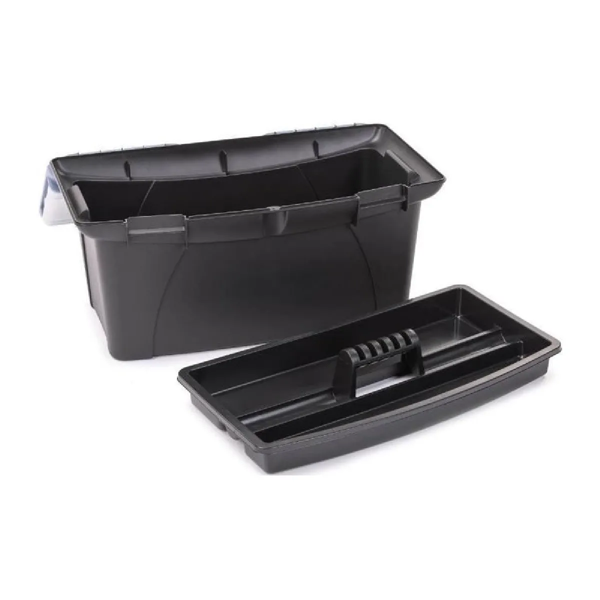 La capacité de 580 × 330 × 390 mm (22'') permet de regrouper outils manuels et accessoires dans un volume unique, tout en restant compact pour les espaces réduits. La structure en plastique résistant privilégie la légèreté et la durabilité au quotidien, adaptée aux besoins de rangement domestique. Le coffret rigide avec verrou maintient le contenu fermé et limite les ouvertures accidentelles lors des déplacements. L'organisateur transparent sur le couvercle donne un accès direct aux petites pièces, ce qui réduit les manipulations et accélère la préparation des interventions.