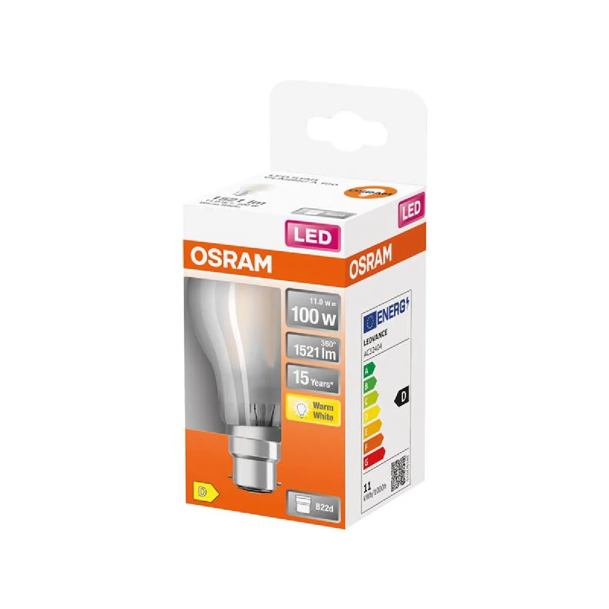Dotée d'un culot B22, cette ampoule s'adapte aux luminaires à baïonnette courants et se monte facilement sans adaptateur supplémentaire.