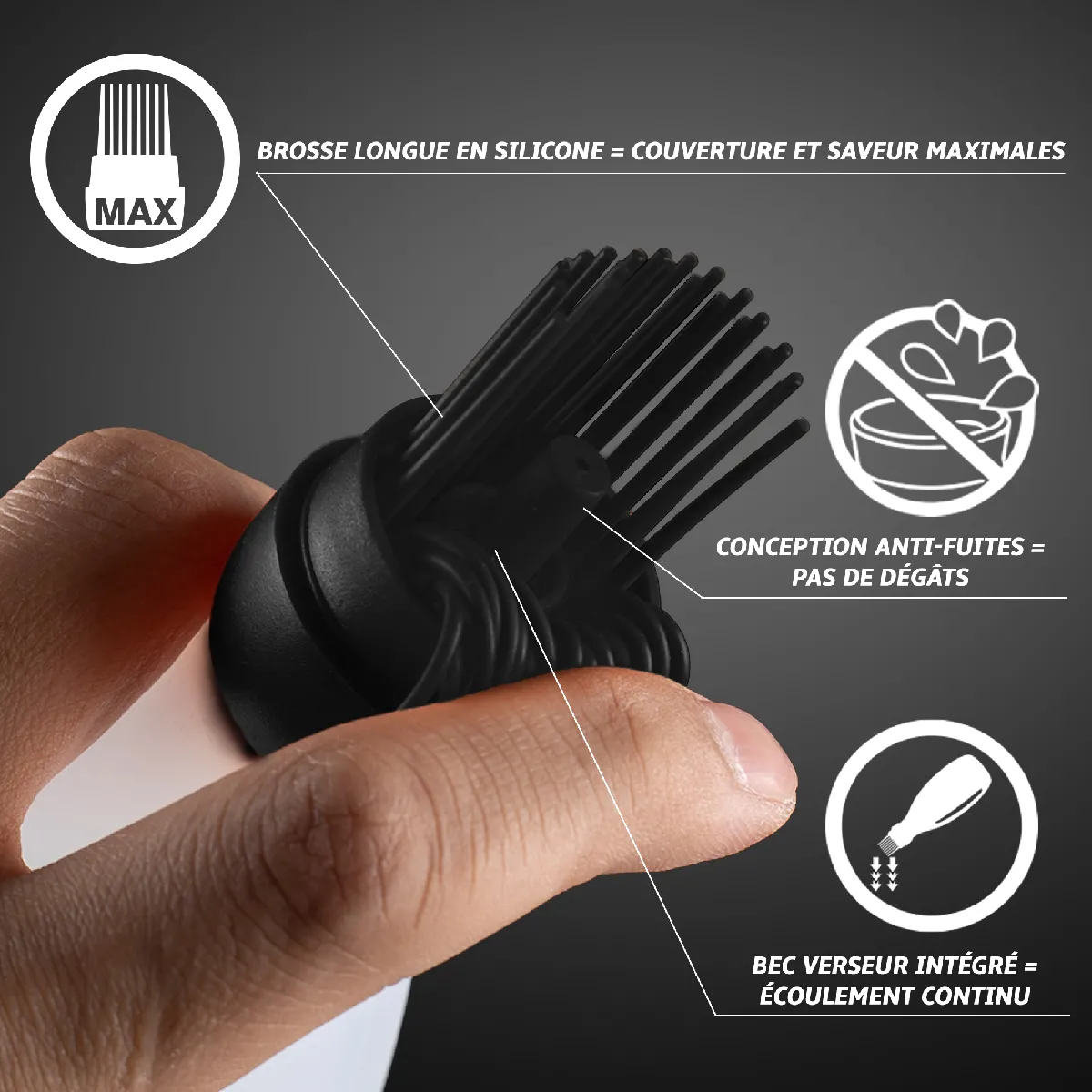 DESIGN INNOVANT 2 en 1 : la combinaison pratique du distributeur & du pinceau de cuisine permet un enrobage fluide sans gaspillage & désordre. Grâce au distributeur de 500 ml, il est possible d'enduire longtemps sans avoir à le remplir.