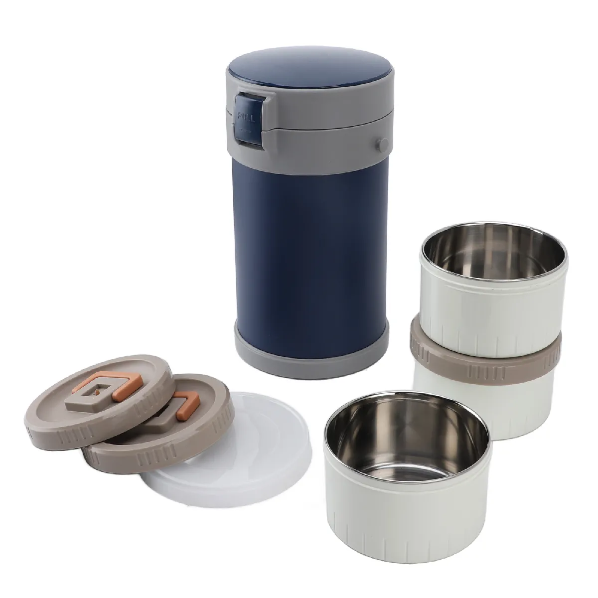 Autre Vue Bocal isotherme à 3 niveaux de 2,3 L - Boîte à lunch en acier inoxydable 304 compatible micro-ondes avec bandoulière