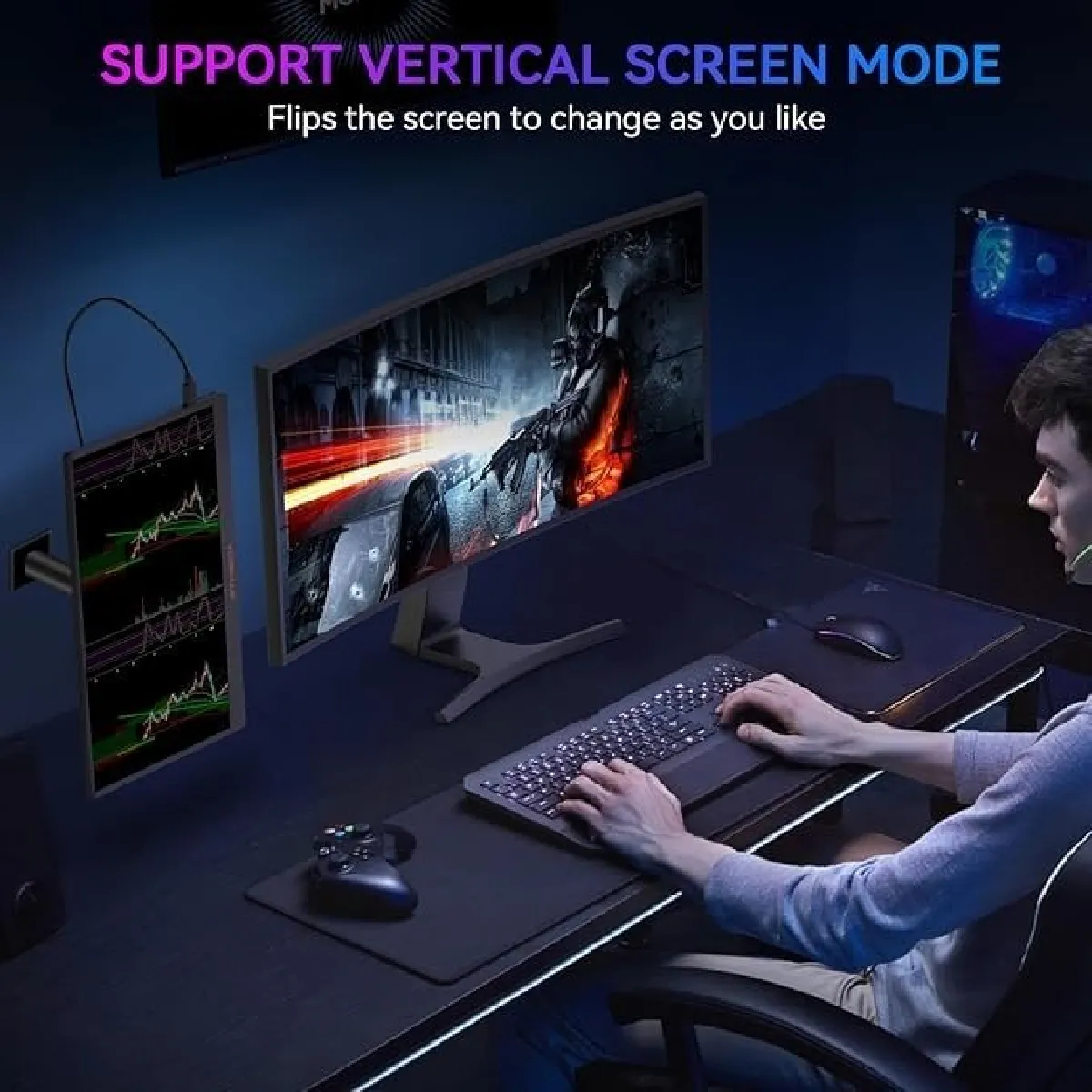 Moniteur portable grand écran de 17,3 pouces : ce moniteur portable de 17,3 pouces offre suffisamment d'espace visuel pour améliorer votre expérience de jeu, augmenter la productivité et profiter d'une expérience de jeu plus grande et plus immersive lorsqu'il est utilisé comme extension d'écran d'ordinateur portable. Que vous combattiez des ennemis dans votre jeu préféré ou que vous agrandissiez votre espace de travail tout en travaillant à distance, la grande taille d'écran de ce moniteur portable offre suffisamment d'espace pour des jeux immersifs et une productivité accrue.