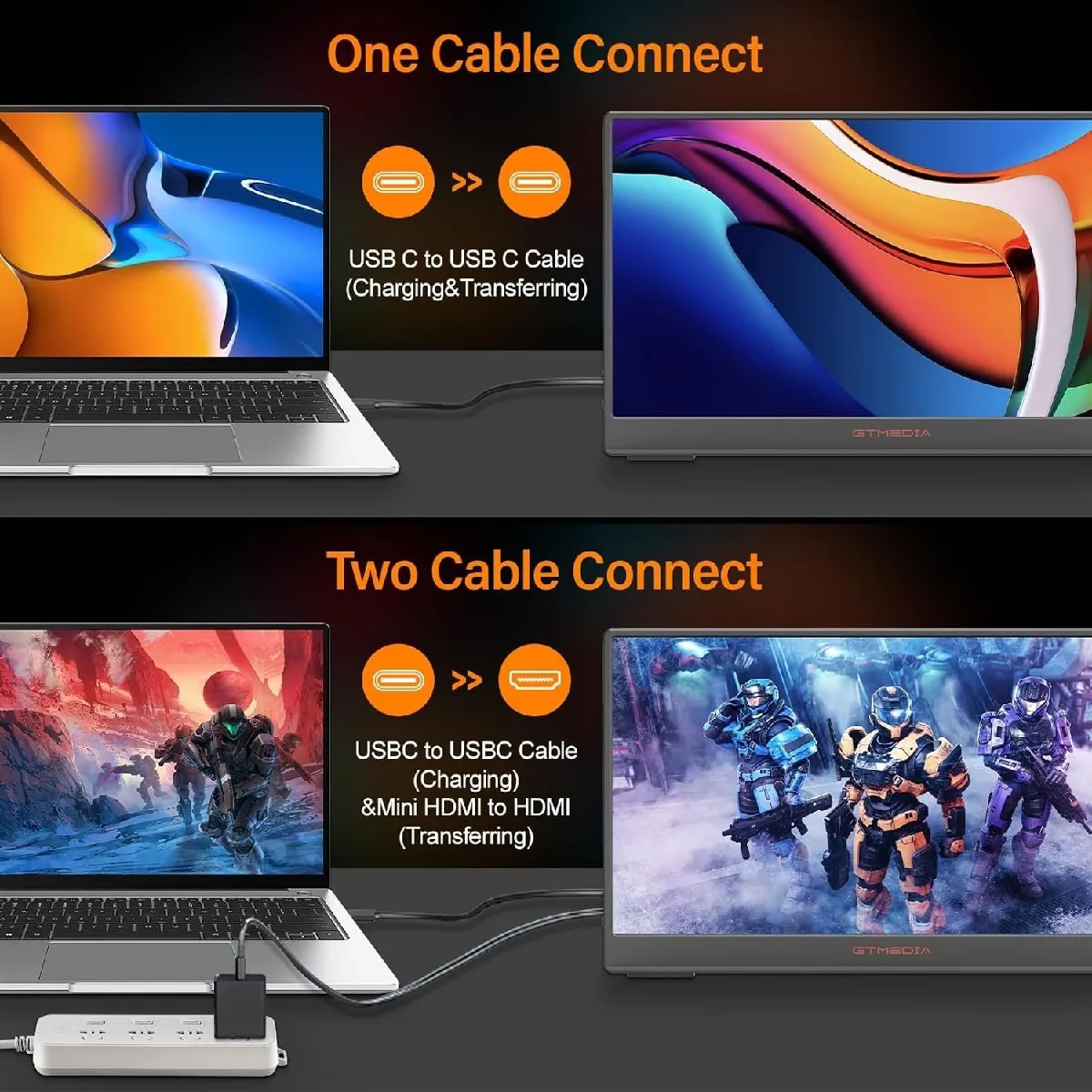 [Prise en charge du port multifonction] : parfait pour une utilisation comme extension de moniteur et d'ordinateur portable. Avec les ports USB C, mini HDMI et USB, ce moniteur portable se connecte facilement à votre ordinateur portable, PC, téléphone, PS4/PS5, Xbox One ou Switch pour lire des présentations professionnelles, des jeux, des vidéos, des émissions de télévision, des photos et plus encore. Il est parfait pour être utilisé comme extension de moniteur et d'ordinateur portable. Gagnez définitivement du temps et améliorez votre efficacité !