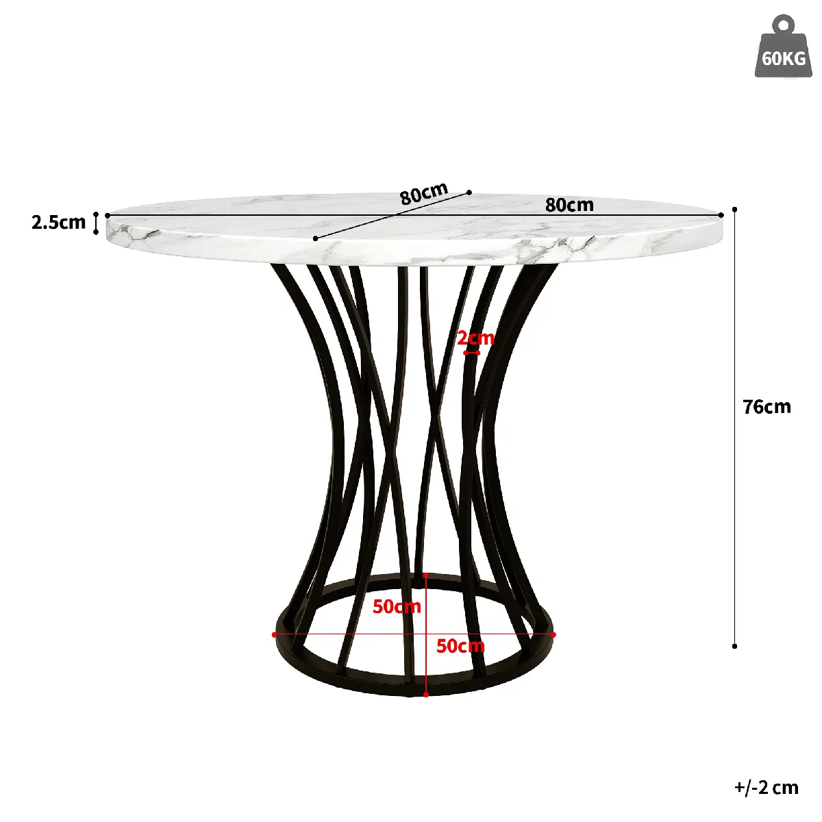 L'alliance d'un plateau en MDF et d'un piètement en métal apporte une esthétique sobre et contemporaine tout en assurant une utilisation fiable au quotidien. Son format rond de 80 cm optimise l'espace autour des chaises et favorise la circulation, pratique dans une cuisine ou un coin repas. La finition noir et blanc s'intègre facilement à des intérieurs variés, du minimaliste au moderne. La hauteur de 76 cm convient aux assises standard pour des repas confortables. Pensée pour la vie de tous les jours, la surface se nettoie aisément pour garder un aspect soigné après chaque utilisation, qu'il s'agisse d'un petit-déjeuner, d'un dîner ou d'une pause café.