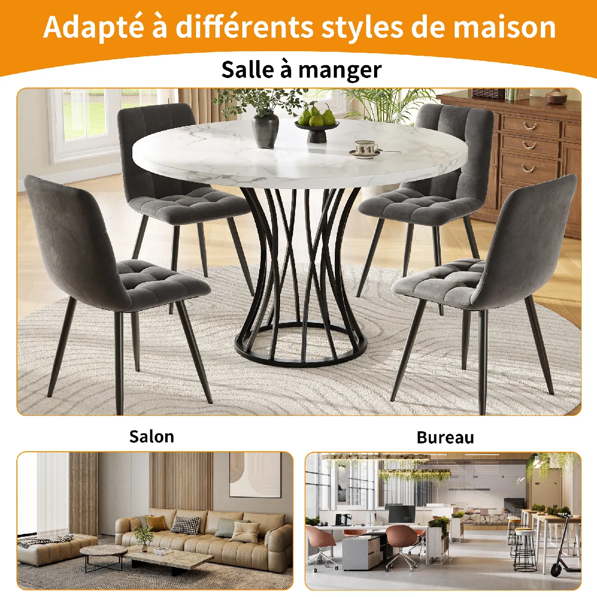 Table à manger ronde - 4 personnes - plateau MDF - pied métal - style moderne