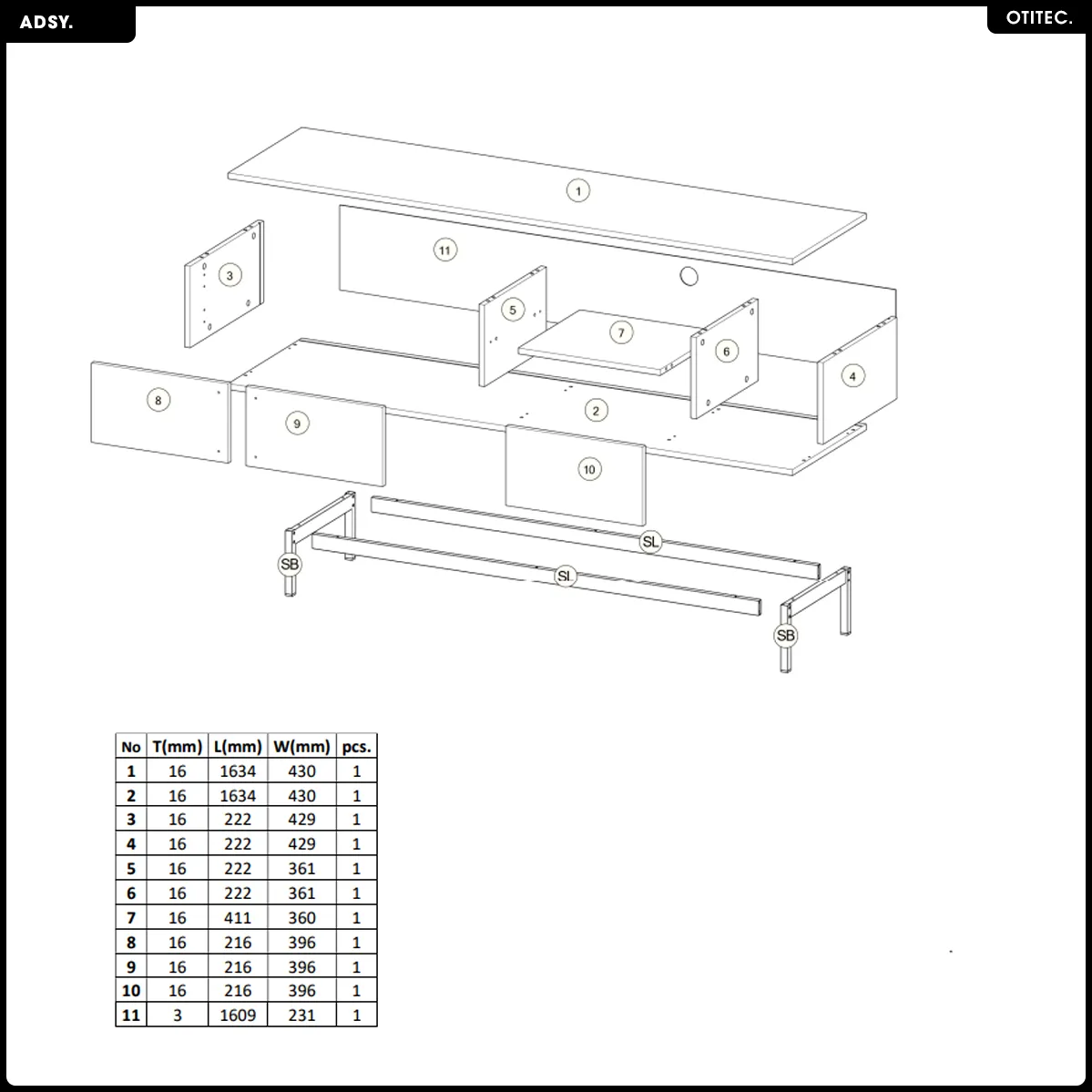Sa longueur de 163 cm et profondeur de 43 cm créent un plateau stable pour un téléviseur avec périphériques, tout en laissant de la place pour des enceintes, une barre de son ou des objets décoratifs. La structure en bois à l'esthétique moderne s'intègre dans un intérieur contemporain en apportant une touche sobre. La couleur anthracite facilite l'association avec des teintes claires ou naturelles pour un contraste équilibré.