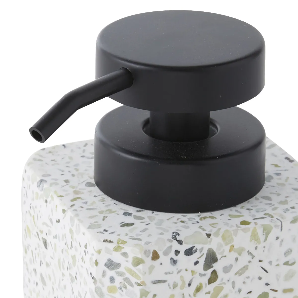 Ce set de salle de bain en polyrésine fait partie de la gamme TERRAZZO. Il contient un distributeur de savon, un porte savon et un porte brosse à dents.
