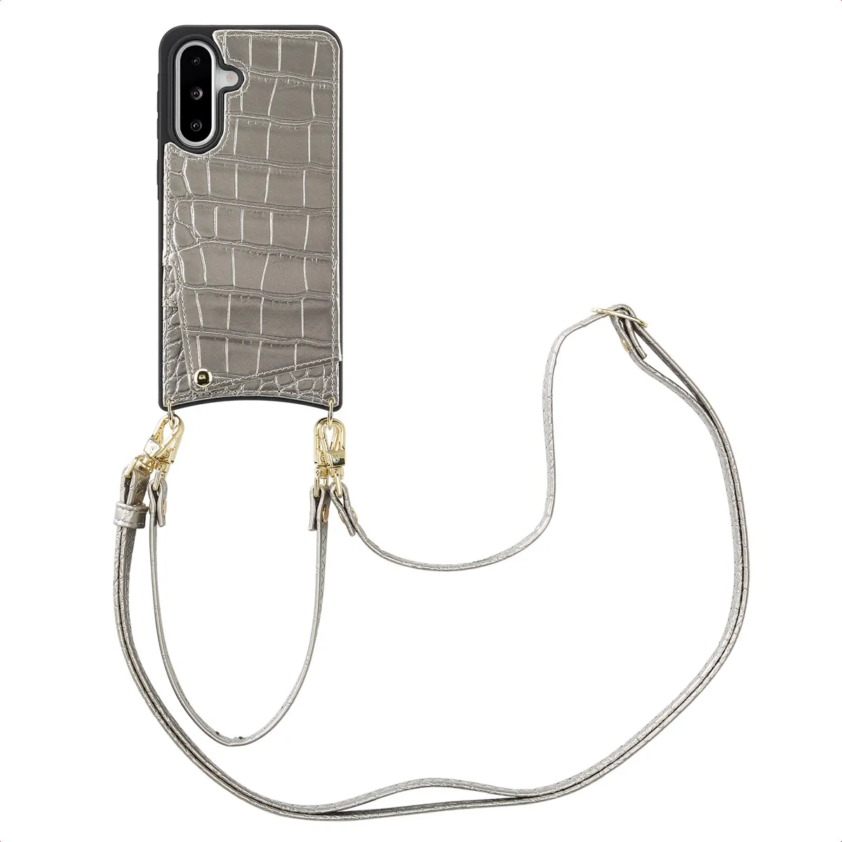 SELENCIA Coque de télephone Nova Croco avec cordon et porte-cartes Samsung Galaxy A36 / A56 - Argent