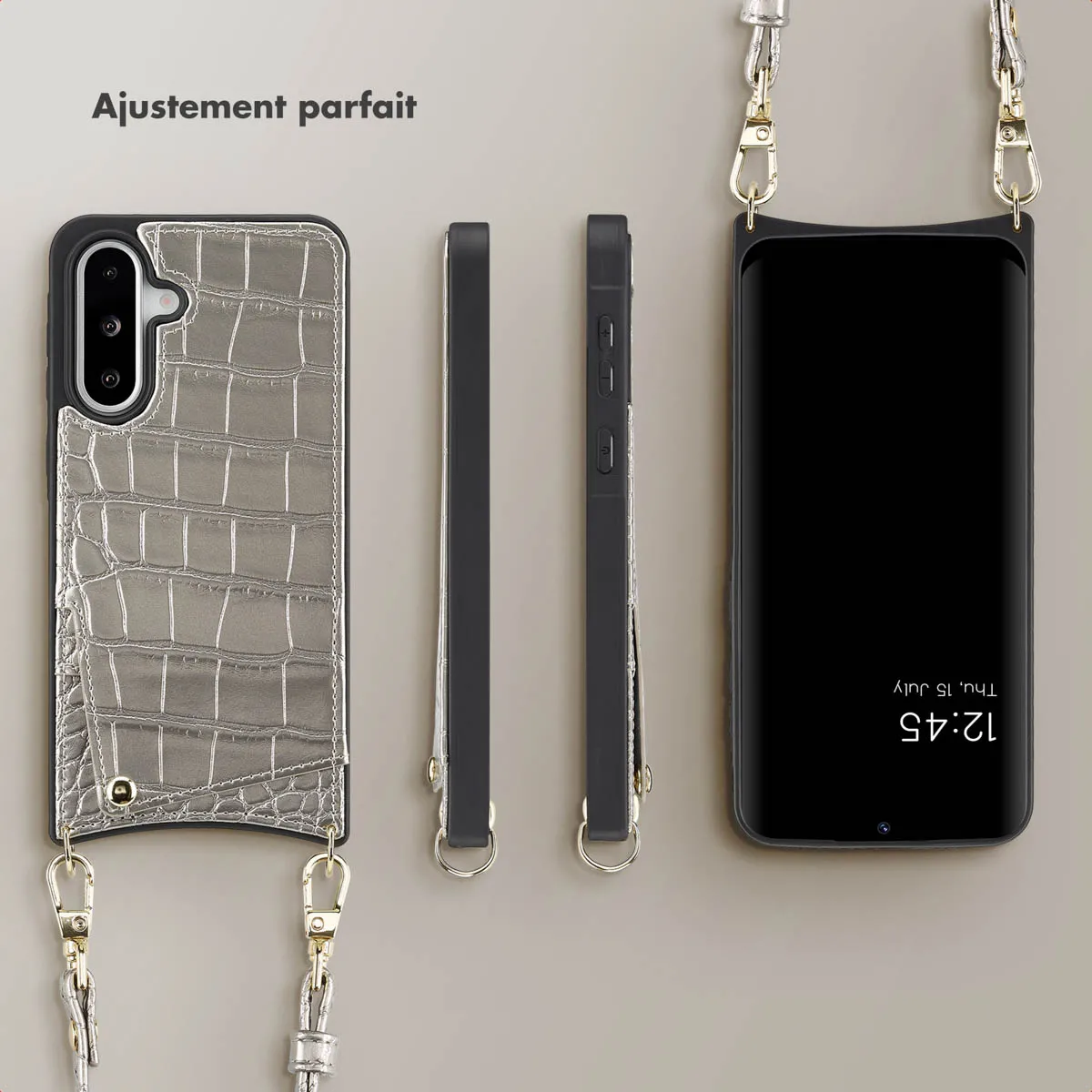 Les cordons sont à la fois amovibles et réglables pour un confort optimal. De plus, ils sont ornés dun imprimé Croco qui saccorde parfaitement avec la coque. Grâce au système de réglage coulissant, vous pouvez ajuster facilement la longueur du long cordon. Allongez-le pour le porter en bandoulière ou utilisez le cordon de poignet pour garder votre téléphone en toute sécurité à portée de main. Les cordons sont également amovibles grâce aux crochets, vous permettant ainsi dutiliser létui comme une simple coque arrière.