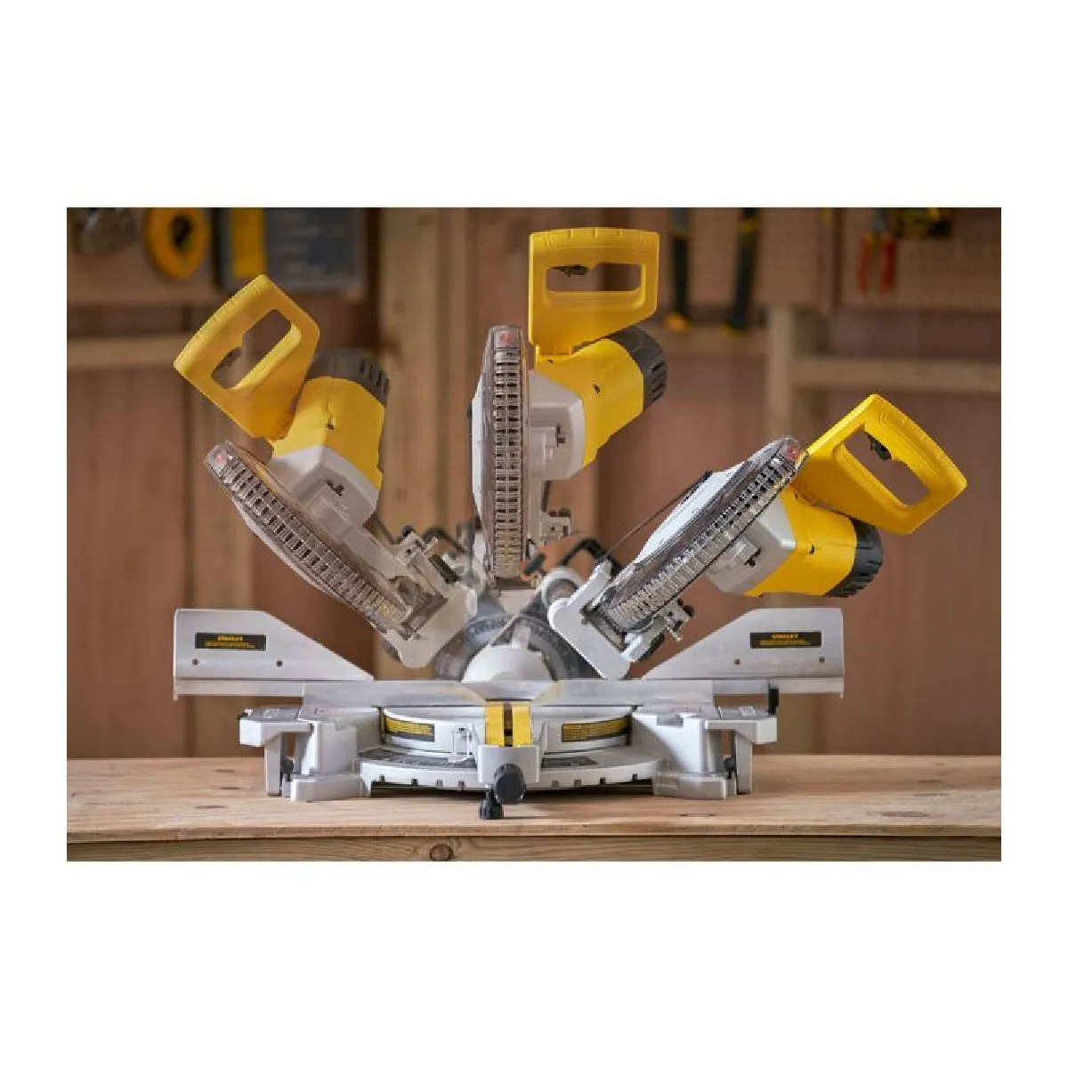 Oui, la scie offre une double coupe en biseau de 0 à 45° sans outil pour travailler des coupes biaises à gauche et à droite.