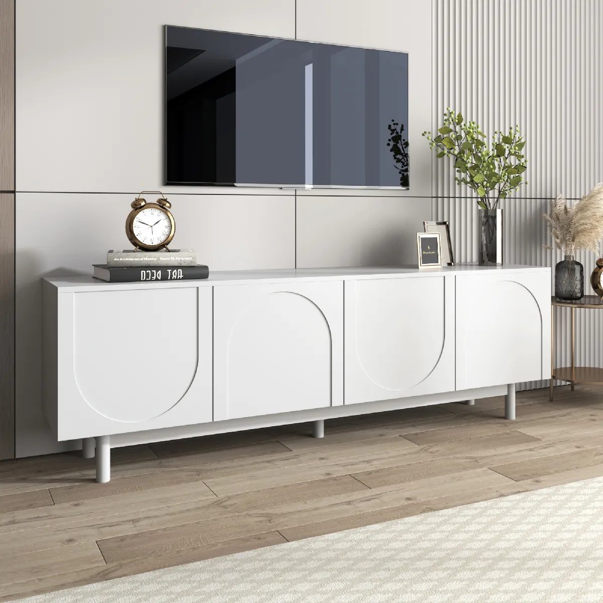 Meuble TV moderne blanc avec rangements ajustables