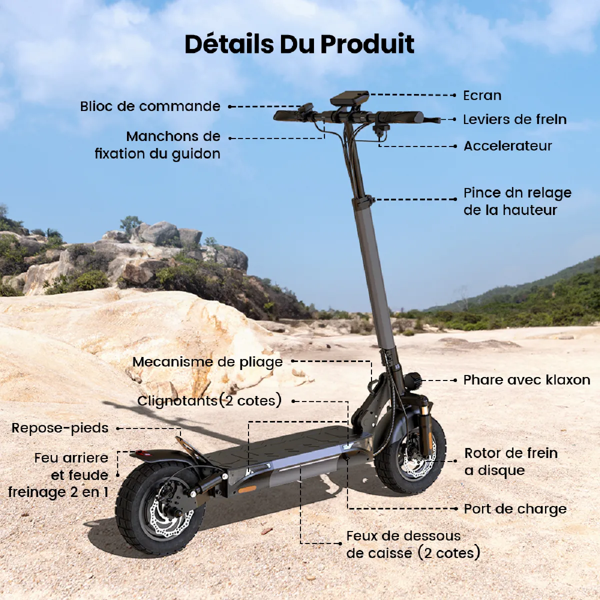 ? [Moteur de 1000 W] Sa puissance offre un couple incroyable, permettant de gravir facilement des pentes jusqu'à 20° et de profiter d'une accélération grisante.