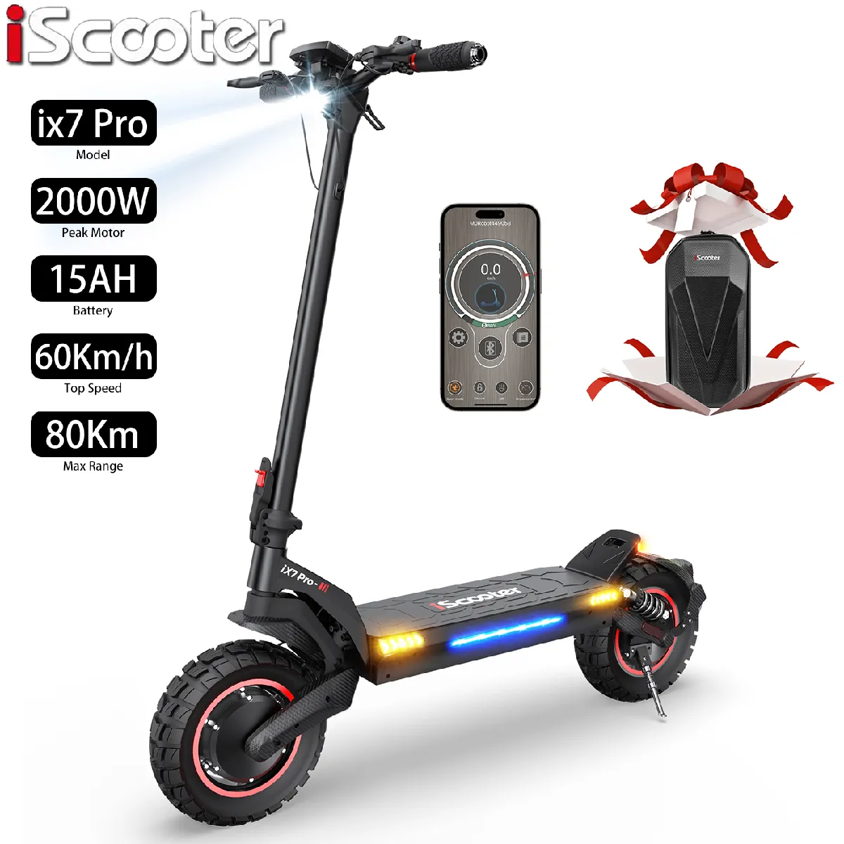 Trottinette électrique Adulte iScooter ix7 Pro 1000Wx2 à Double Moteur Pliable Vitesse Maximale 60km/h 48V Batterie 17,5AH Max Autonomie 80Km Charge Maximale 150kg