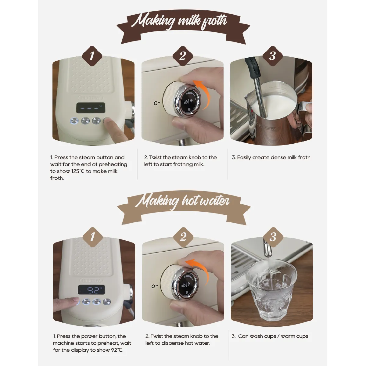 Machine à Espresso 20 Bar HIBREW H10B Beige