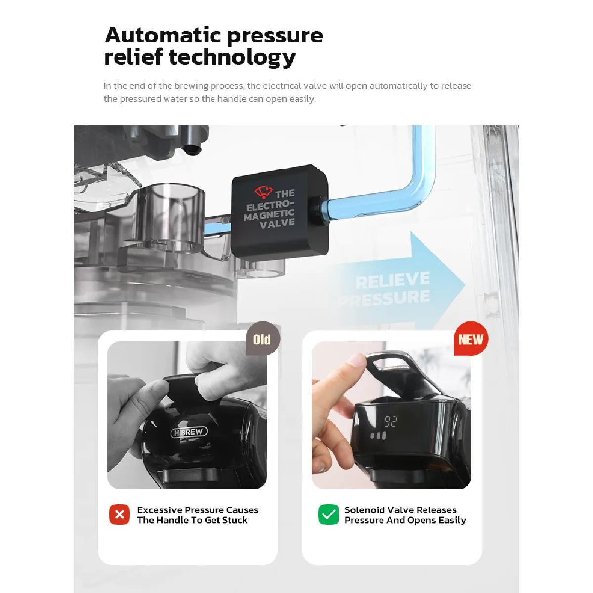 La machine à café à capsules HiBREW est équipée d'une pompe haute pression et d'une technologie de chauffage en spirale qui fournit une force de 19 bars et un chauffage d'environ 161,6 °F. Une pression stable assure une extraction de haute qualité de la capsule/poudre de café, vous permettant de profiter d'un expresso avec une crème riche à chaque infusion.