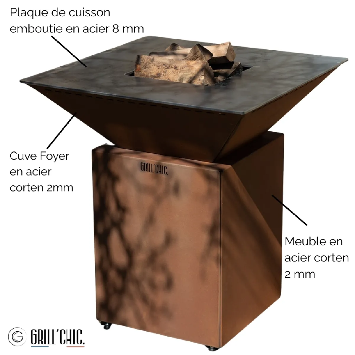 GRILL CHIC Braséro CEVENOL Simple Cuve Corten Carré 83cm |