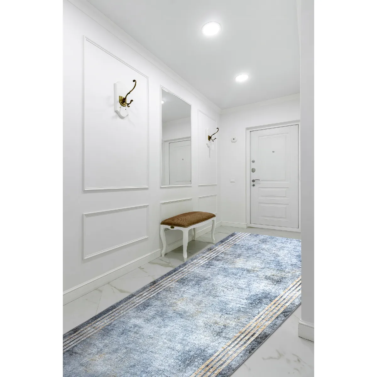 RUGSX TAPIS DE COULOIR antidérapant LOTUS FRAMES 29870 Cadre, pierre argent or lavable 80cm 80x780 cm |