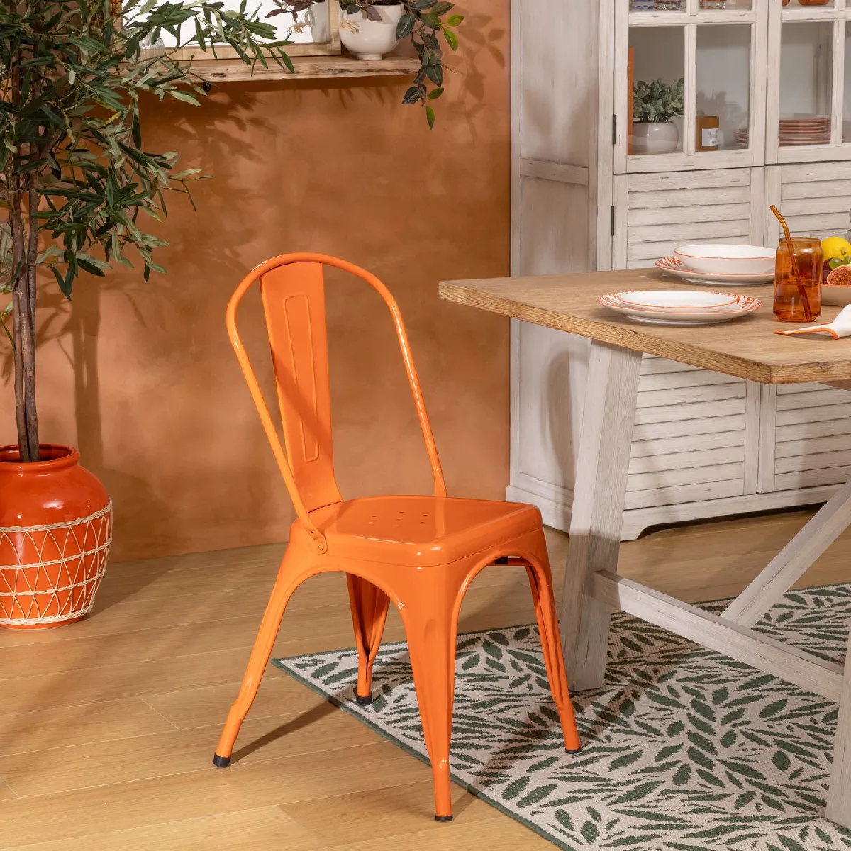 Atmosphera Lot de 4 chaises en métal NIKO - Orange