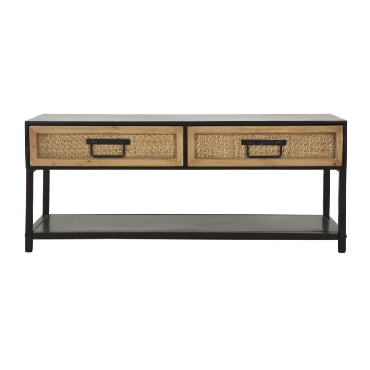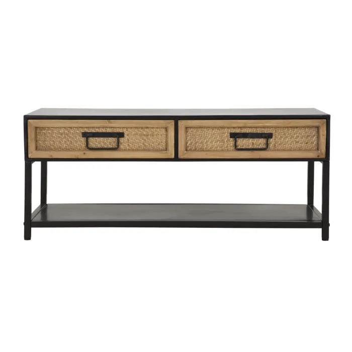 Meuble TV 2 tiroirs Hanoï 95 cm Naturel & Noir