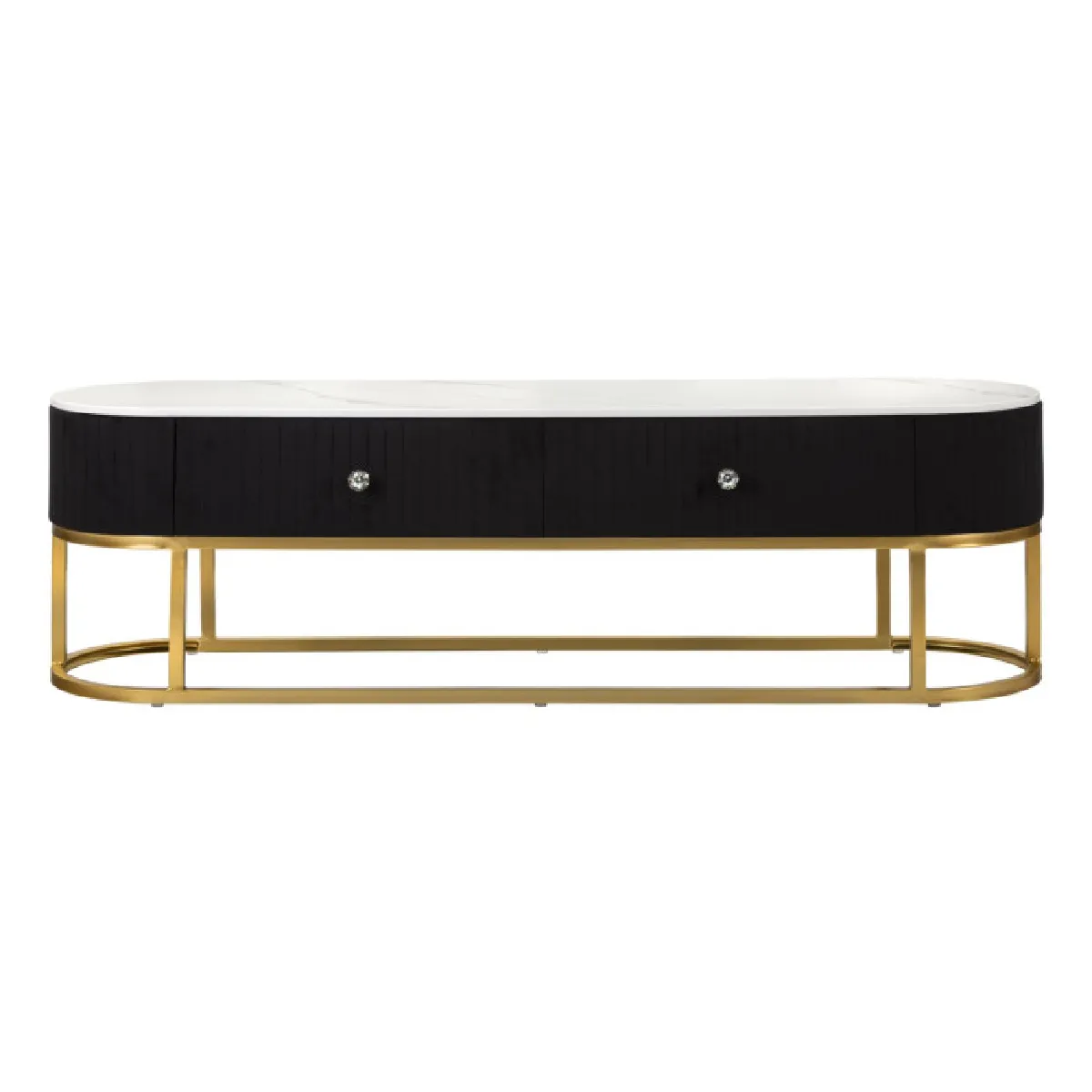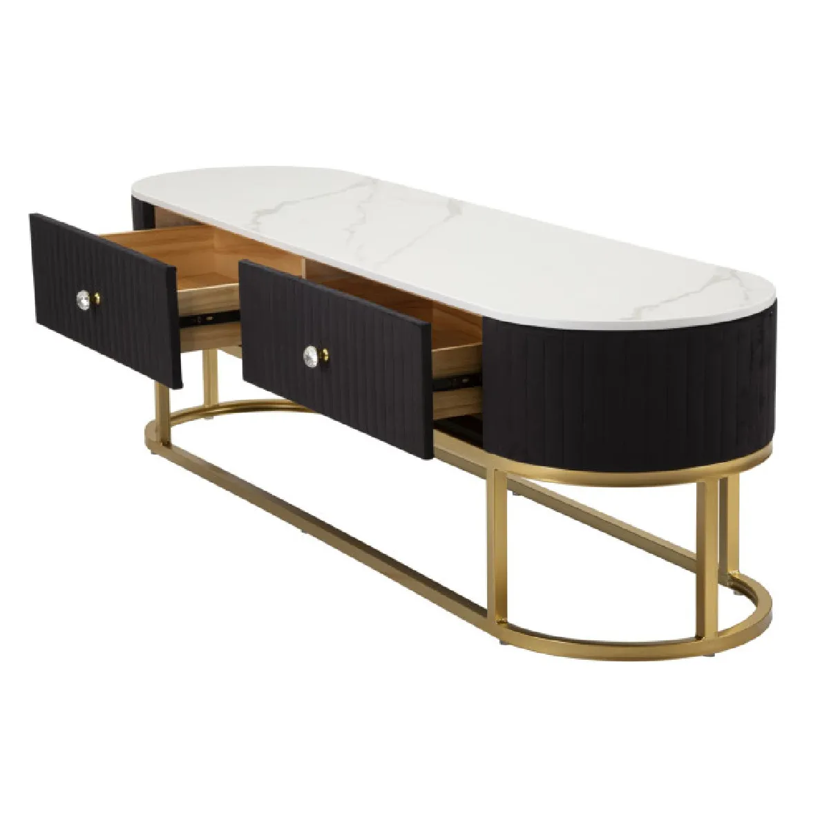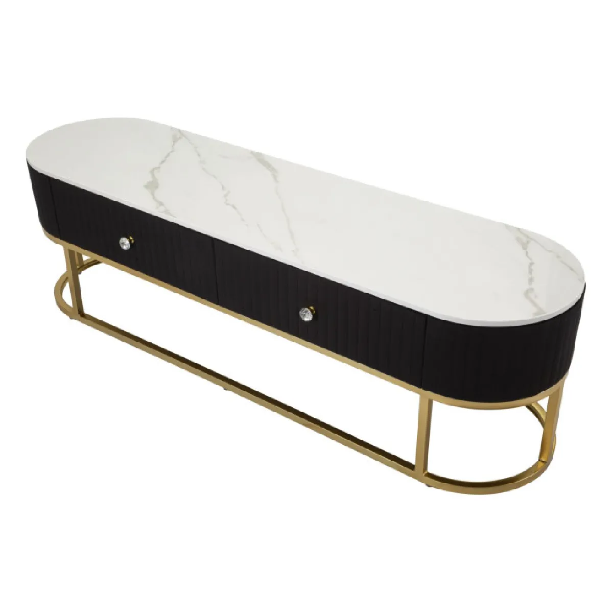 Meuble TV ovale noir et or avec plateau effet marbre