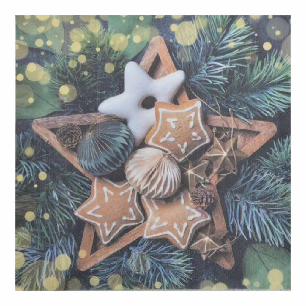 Commentaire vendeur : Informations Techniques : Dimensions : L. 33 x l. 33 cm Matières : Papier Spécificités : Pratique & Utile Lot de 20 Serviettes Forme Carrée 3 Plis Design Gâteaux & Étoile Poids : 0,112 kg Couleur : Naturel & Vert