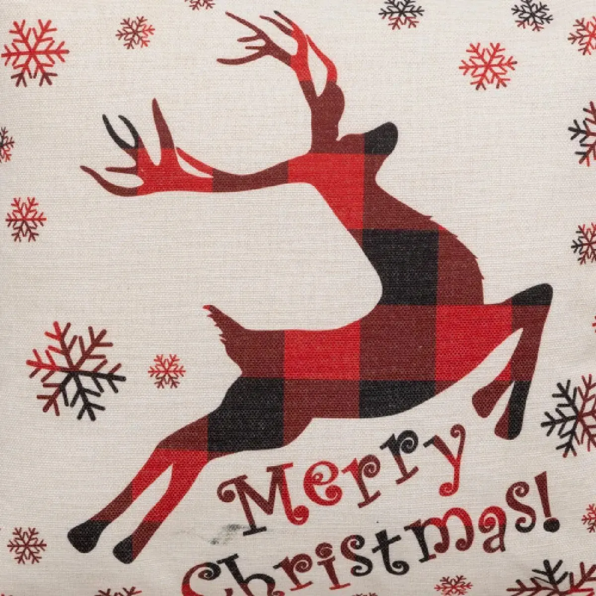Commentaire vendeur : Informations Techniques : Dimensions : L. 40 x l. 40 x H. 6 cm Matière : Polyester Spécificités : Pratique & Utile Coussin déco de Noël Motif renne Inscription "Merry Christmas" Forme carrée Poids : 0,38 kg Couleur : Beige