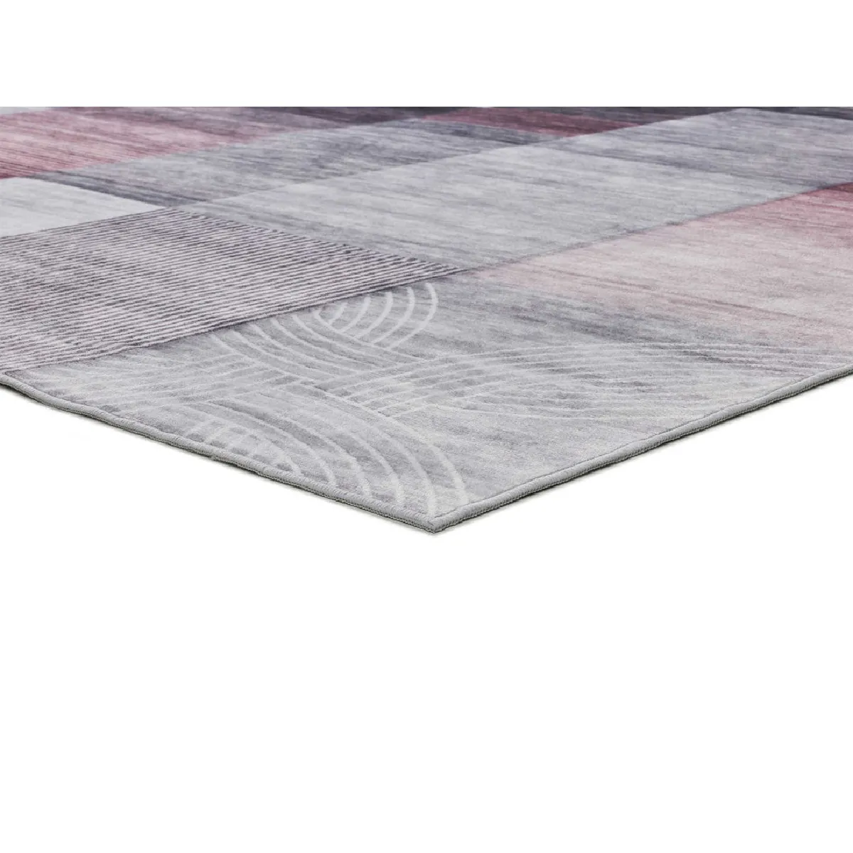 Tapis à poils courts - Antidérapant - Polyester - Géométrique - Gris/Rose - 160x230 cm