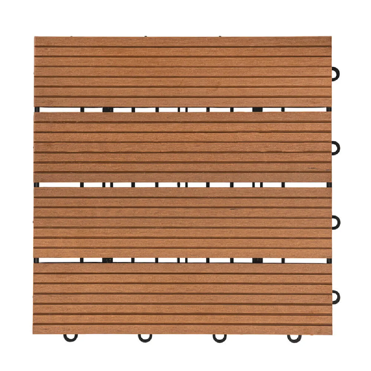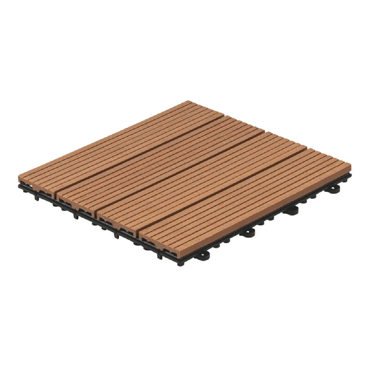 La légère veinure de la surface donne un aspect bois convaincant et fait de ces carreaux écologiques un véritable point fort de votre espace extérieur. La face inférieure des carreaux de terrasse est dotée d'une grille de drainage, de sorte qu'ils sèchent rapidement même après une averse et que l'on peut à nouveau marcher dessus sans risque de glisser. Grâce au système d'encliquetage pratique de nos carreaux de terrasse, la pose est un jeu d'enfant et rapide, même sur les grandes surfaces. Il suffit d'accrocher les dalles les unes aux autres pour obtenir une surface stable et uniforme.