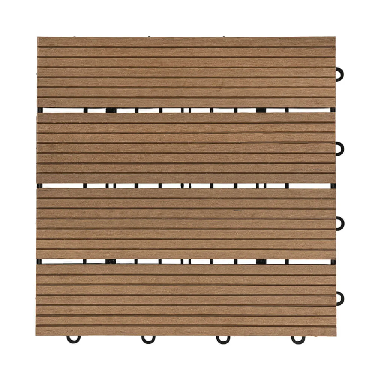 La légère veinure de la surface donne un aspect bois convaincant et fait de ces carreaux écologiques un véritable point fort de votre espace extérieur. La face inférieure des carreaux de terrasse est dotée d'une grille de drainage, de sorte qu'ils sèchent rapidement même après une averse et que l'on peut à nouveau marcher dessus sans risque de glisser. Grâce au système d'encliquetage pratique de nos carreaux de terrasse, la pose est un jeu d'enfant et rapide, même sur les grandes surfaces. Il suffit d'accrocher les dalles les unes aux autres pour obtenir une surface stable et uniforme.