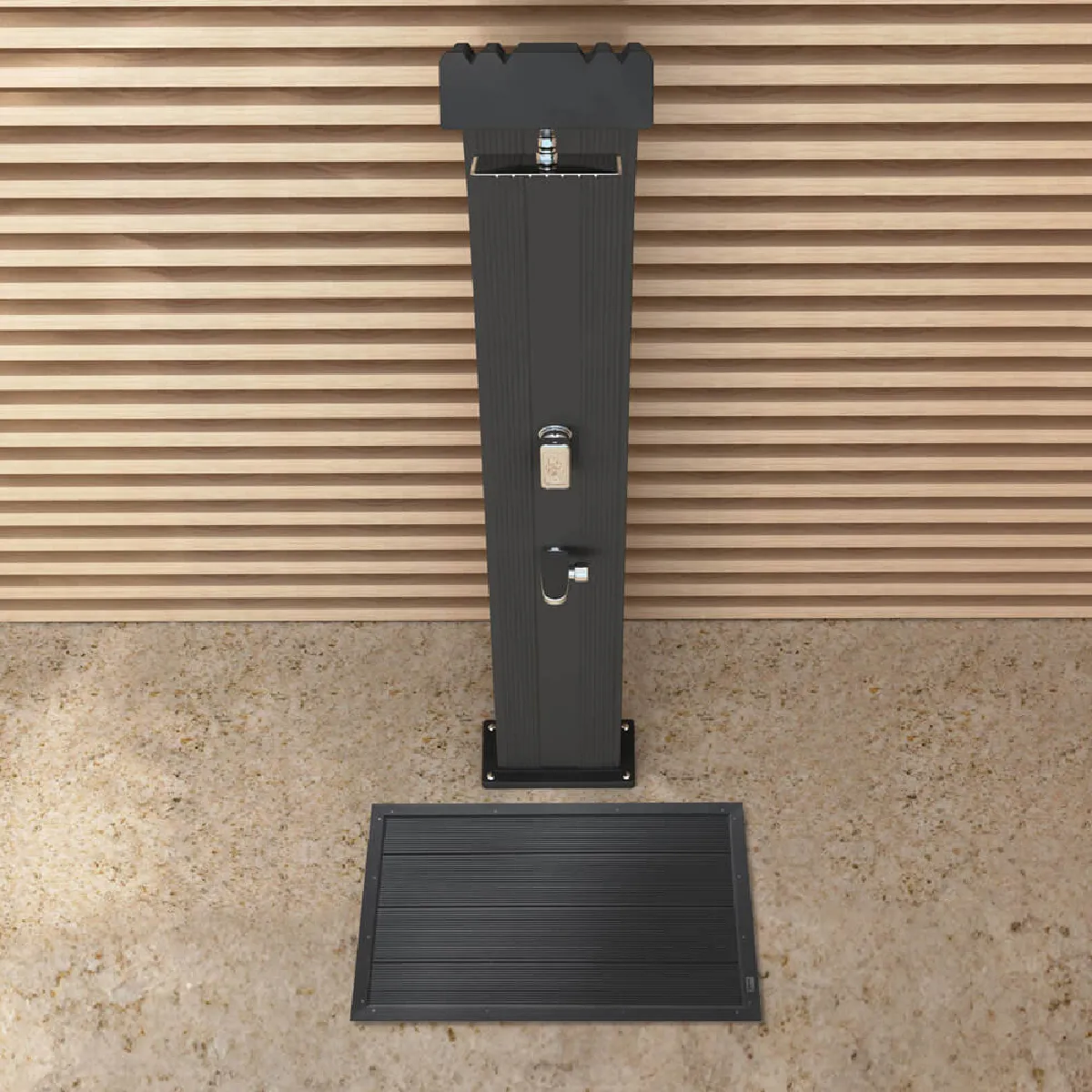 Le matériau WPC robuste en anthracite noble confère à ta dalle de sol une esthétique moderne intemporelle et s'intègre harmonieusement dans l'environnement. Notre plaque de sol en WPC n'est pas seulement un point fort visuel, mais aussi un garant de longévité et de stabilité. Grâce à ses propriétés résistantes, elle défie les éléments et reste en pleine forme pendant des années. Profite de moments de douche sans souci, sans devoir faire de compromis sur la qualité. La surface antidérapante de la plate-forme assure sécurité et confort à chaque douche. Même dans des conditions humides, le risque de glisser est minime, ce qui te permet de te concentrer pleinement sur l'expérience rafraîchissante de la douche.
