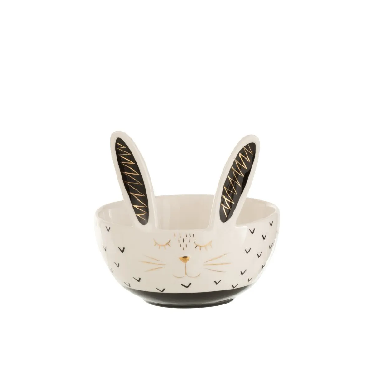 Commentaire vendeur : Informations Techniques : Dimensions : D. 16,5 x H. 15 cm Matière : Céramique Spécificités : Utile & Original Saladier design lapin Forme ronde Poids : 0,55 kg Couleur : Blanc, Noir & Or