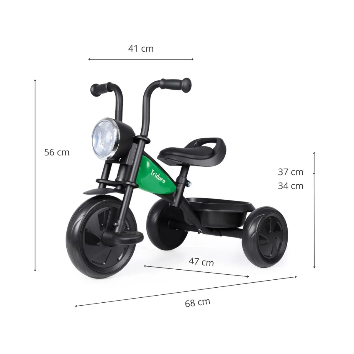 Le Qplay Triduro est un tricycle original et multifonctionnel, alliant design moto, confort et sécurité. Idéal pour les premières aventures, il encourage l'équilibre et la mobilité tout en offrant des fonctionnalités amusantes comme la lampe LED et le coffre arrière.