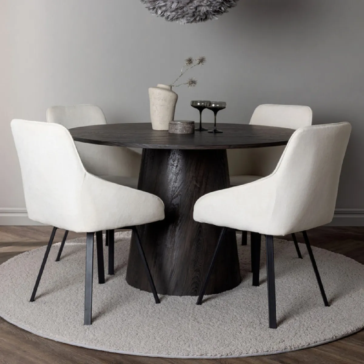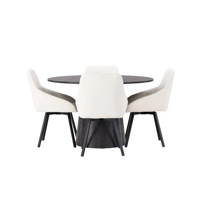 Ensemble table à manger ronde 120 cm avec 4 chaises Beige & moka