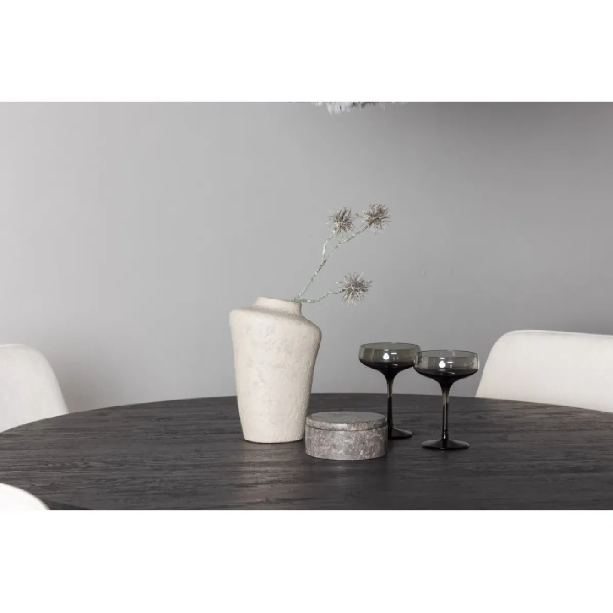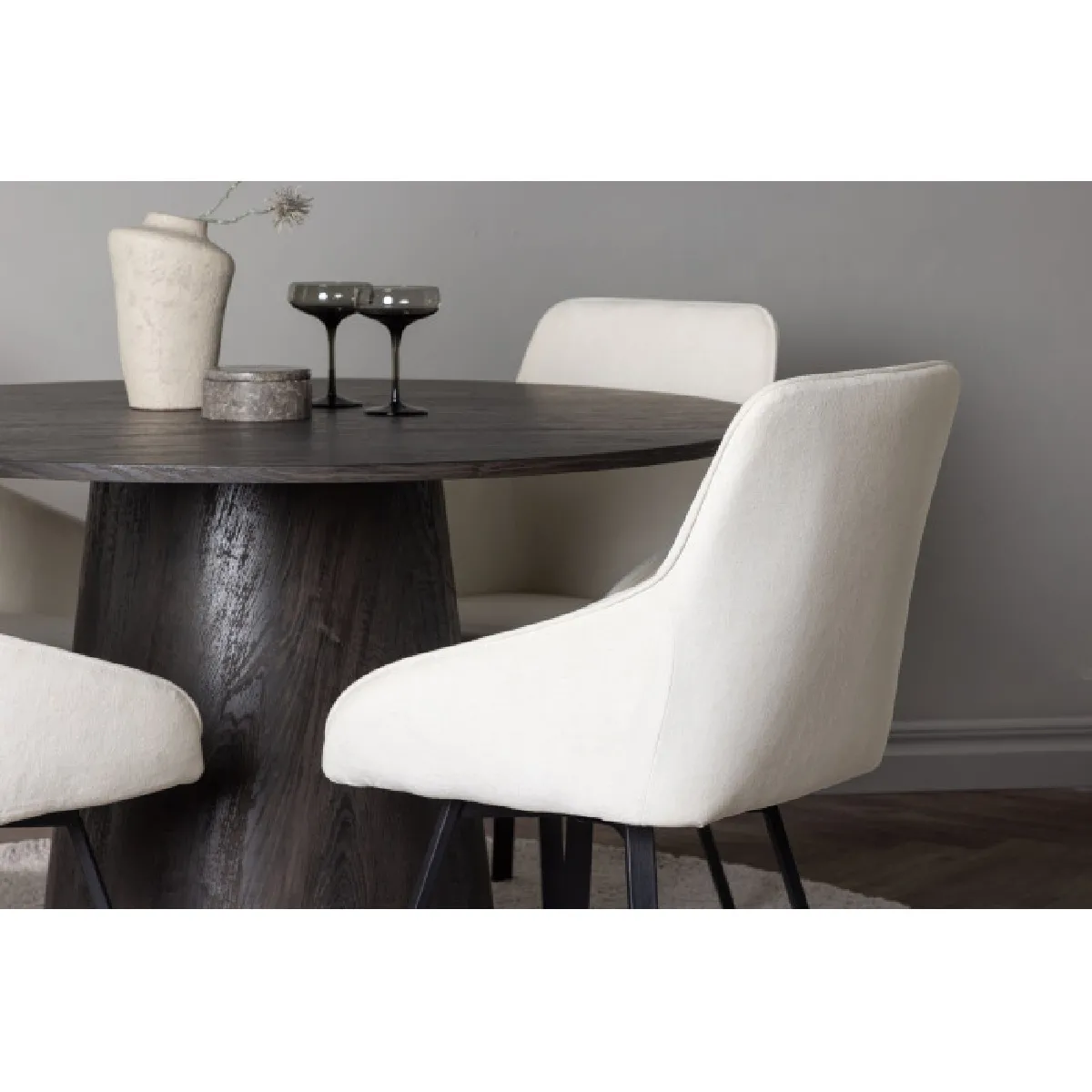 La surface ronde de 120 cm favorise des repas conviviaux tout en optimisant l'espace dans une salle à manger de taille moyenne. Le plateau en MDF de 2 cm présente un effet bois discret qui s'harmonise avec les chaises en tissu effet lin. L'association Beige & moka apporte une présence visuelle sobre, adaptée aux pièces lumineuses comme aux intérieurs plus chaleureux. La table affiche une stabilité fiable pour un usage quotidien, tandis que chaque chaise supporte jusqu'à 120 kg. La cohérence des formes et des matières crée une ligne moderne et élégante sans surcharge visuelle, idéale pour des repas du quotidien comme pour accueillir des invités.