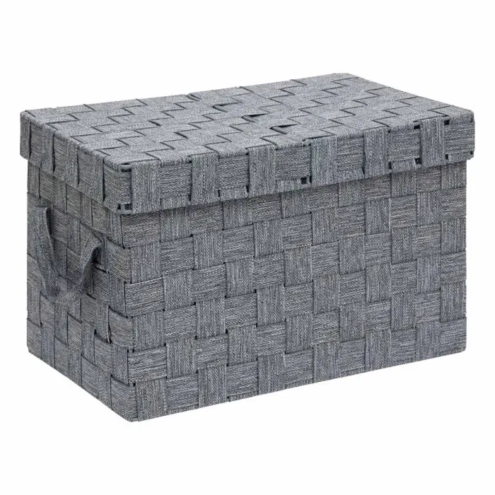 Commentaire vendeur : Informations Techniques : Dimensions : Petite : L. 16,8 x l. 30 x H. 15,5 cm Grande : L. 22,3 x l. 21,2 x H. 35 cm Matières : Polyester & Métal Spécificités : Pratique & Utile Lot de 2 boîtes de rangements Avec couvercle et poignées Contenance : Petite : 6,8 L Grande : 14 L Poids : 0,53 kg Couleur : Gris