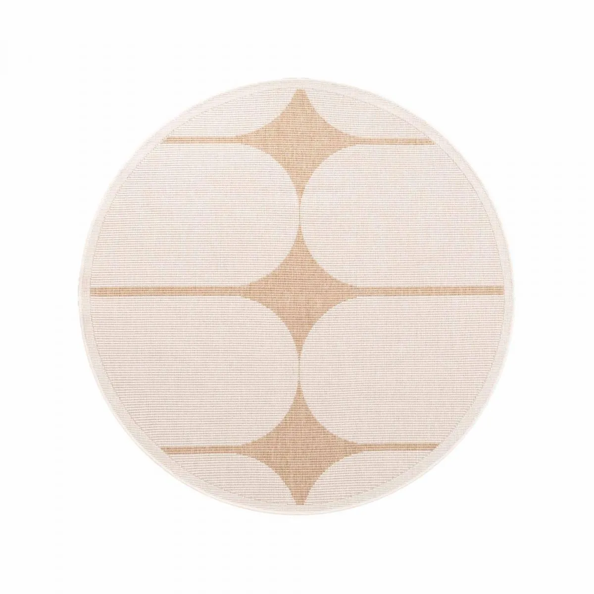 UnAmourDeTapis Tapis exterieur 160 x 160-cm, beige, marron, forme rond, kilim géométrique, idéal terrasse |