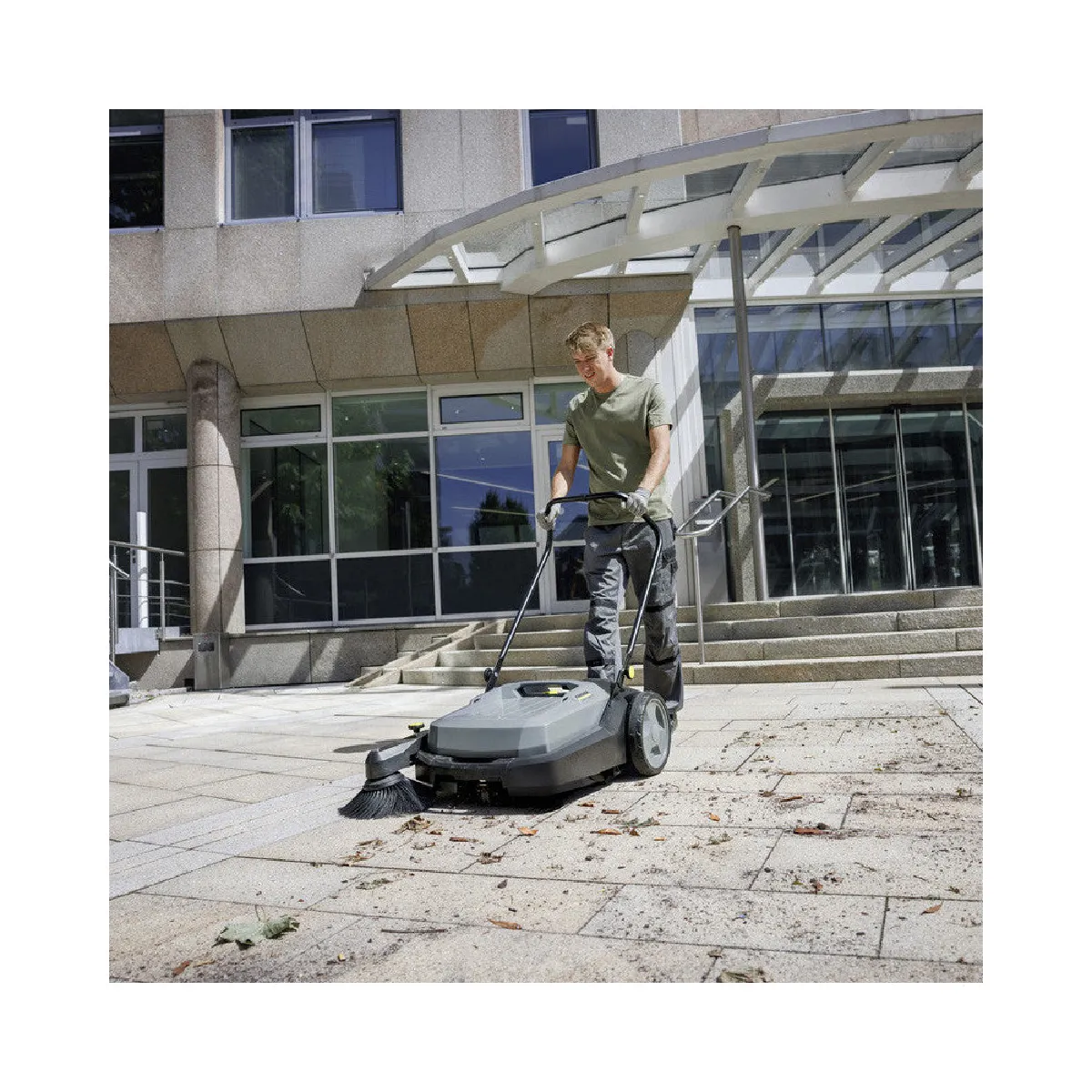 - Balayeuse autotractée manuelle conçue pour un nettoyage sans poussières des surfaces intérieures et extérieures grâce à un filtre anti-poussière intégré