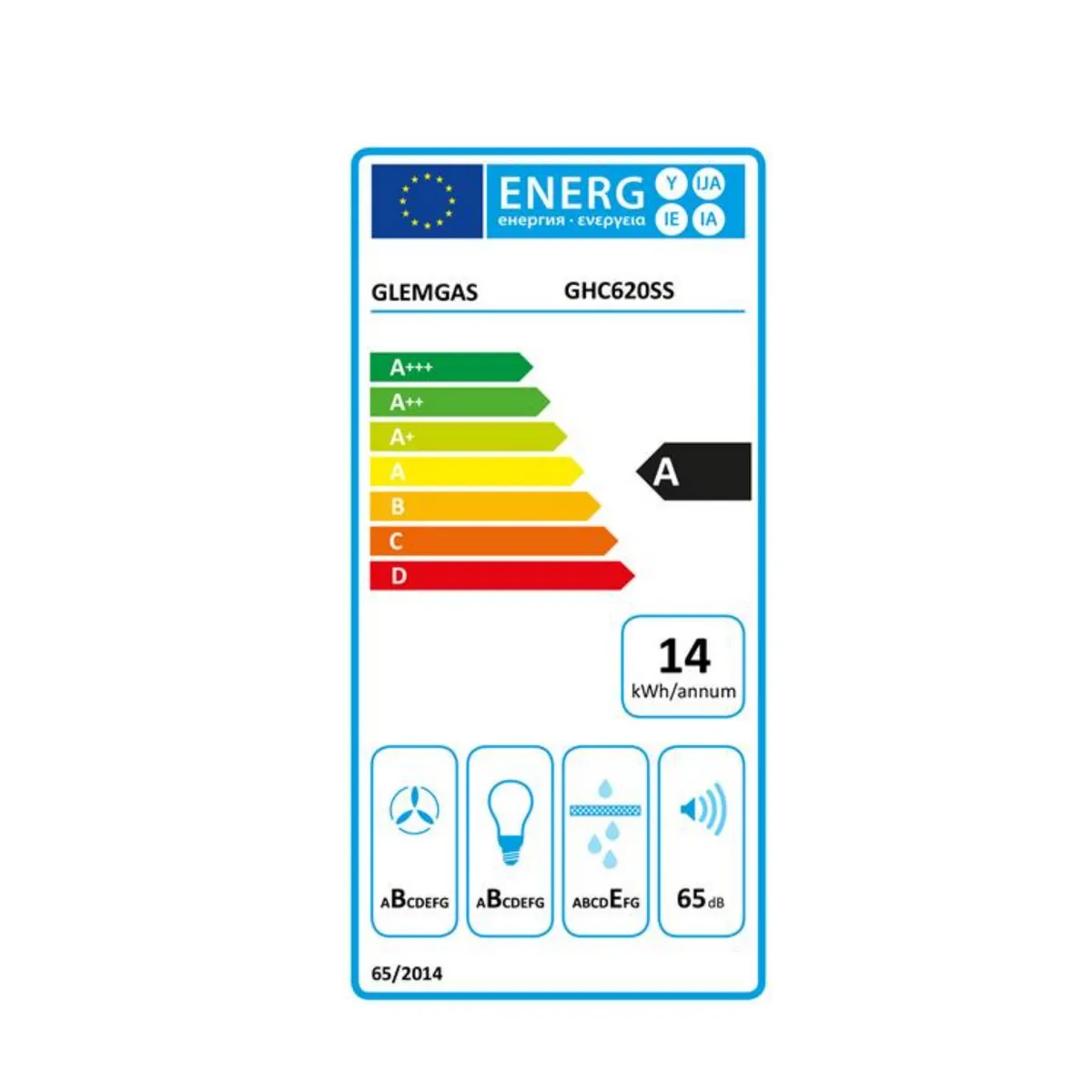 Hotte casquette 60 cm - 230 m³/h - 1 moteur 30W - 51 à 65 dB(A) min./max GLEM - GHC620SS