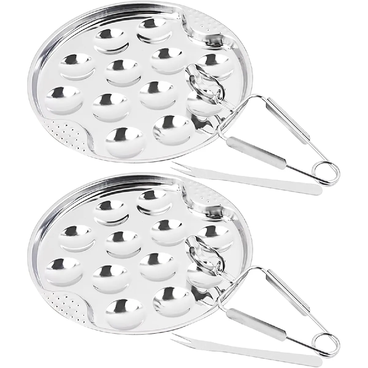 Le plateau à huîtres DBAILY est fabriqué en acier inoxydable de qualité alimentaire, assurant sécurité et durabilité pour tous vos repas de fruits de mer. Il dispose de 12 bacs à huîtres, parfaits pour contenir escargots, coquilles ou autres fruits de mer, avec une surface lisse et texturée facile à nettoyer sans risque de se blesser. Sa conception d’oreille surélevée assure une bonne prise en main et empêche tout glissement, même lorsque le plateau est chaud. Polyvalent, ce plateau peut également accueillir sushis, œufs ou autres plats délicats et peut être utilisé en toute sécurité au four, au réfrigérateur ou au lave-vaisselle. Le lot comprend 2 plaques de 12 trous, 2 pinces et 2 fourchettes, idéales pour servir vos invités avec élégance et praticité.