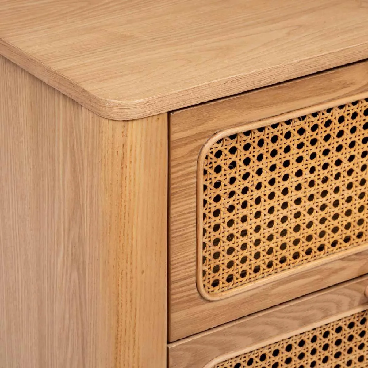 Les façades de tiroirs en MDF et rotin proposent un cannage en rotin qui apporte une texture visuelle tout en conservant une ouverture fluide au quotidien. Le piètement en bois (frêne) contribue à la stabilité et à une silhouette épurée qui se combine avec des matières claires. Le meuble est à monter soi-même, ce qui permet d'installer chaque élément avec soin pour un rangement esthétique et pratique au quotidien.