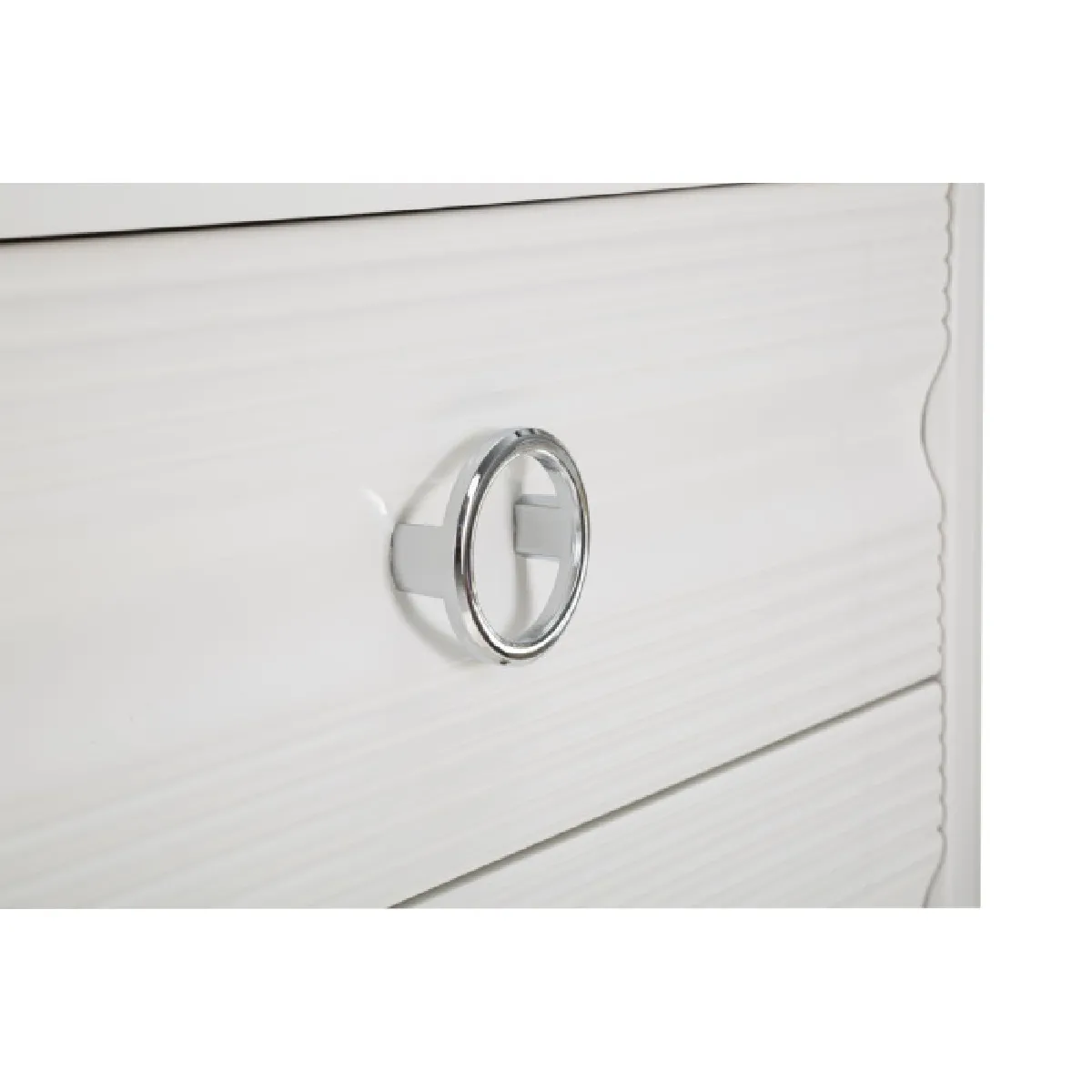 Un rangement quotidien devient plus simple grâce à une organisation claire des vêtements et accessoires. Cette commode réunit une structure en bois avec façades blanches et un format étudié pour les chambres adultes. Son encombrement maîtrisé facilite l'intégration le long d'un mur, tandis que la hauteur permet un plateau utile pour lampes ou cadres. Les poignées rondes argentées assurent une prise aisée à l'ouverture des tiroirs. Le meuble est livré avec montage requis, pour une installation adaptée à l'espace. Sans roulettes, il reste stable une fois positionné, et son style design accompagne une décoration sobre et lumineuse.