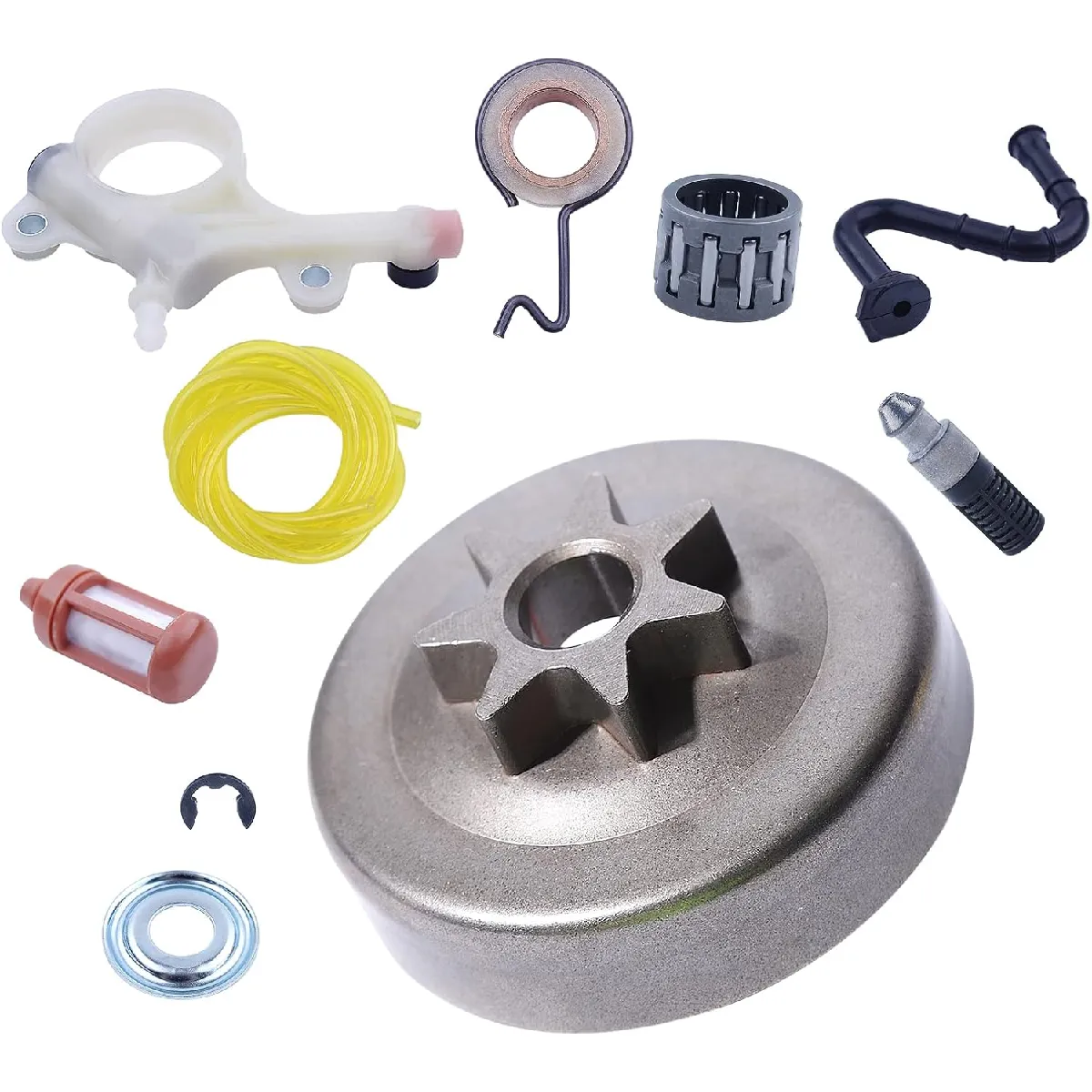 Un ensemble complet doutils : 1 x tambour dembrayage en étoile, 1 x pompe à huile, 1 x filtre à huile, 1 x engrenage à vis sans fin, 1 x rondelle, 1 x E-Clip, 1 x roulement à aiguilles, 1 x filtre à carburant, 1 x conduite de carburant, 1 x tube de tuyau