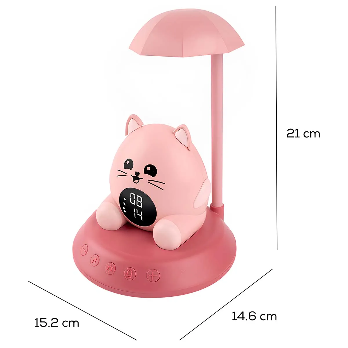 BigBen Réveil Enfant Chat Rétroéclairé avec Veilleuse Musicale et Affichage Digital Rose