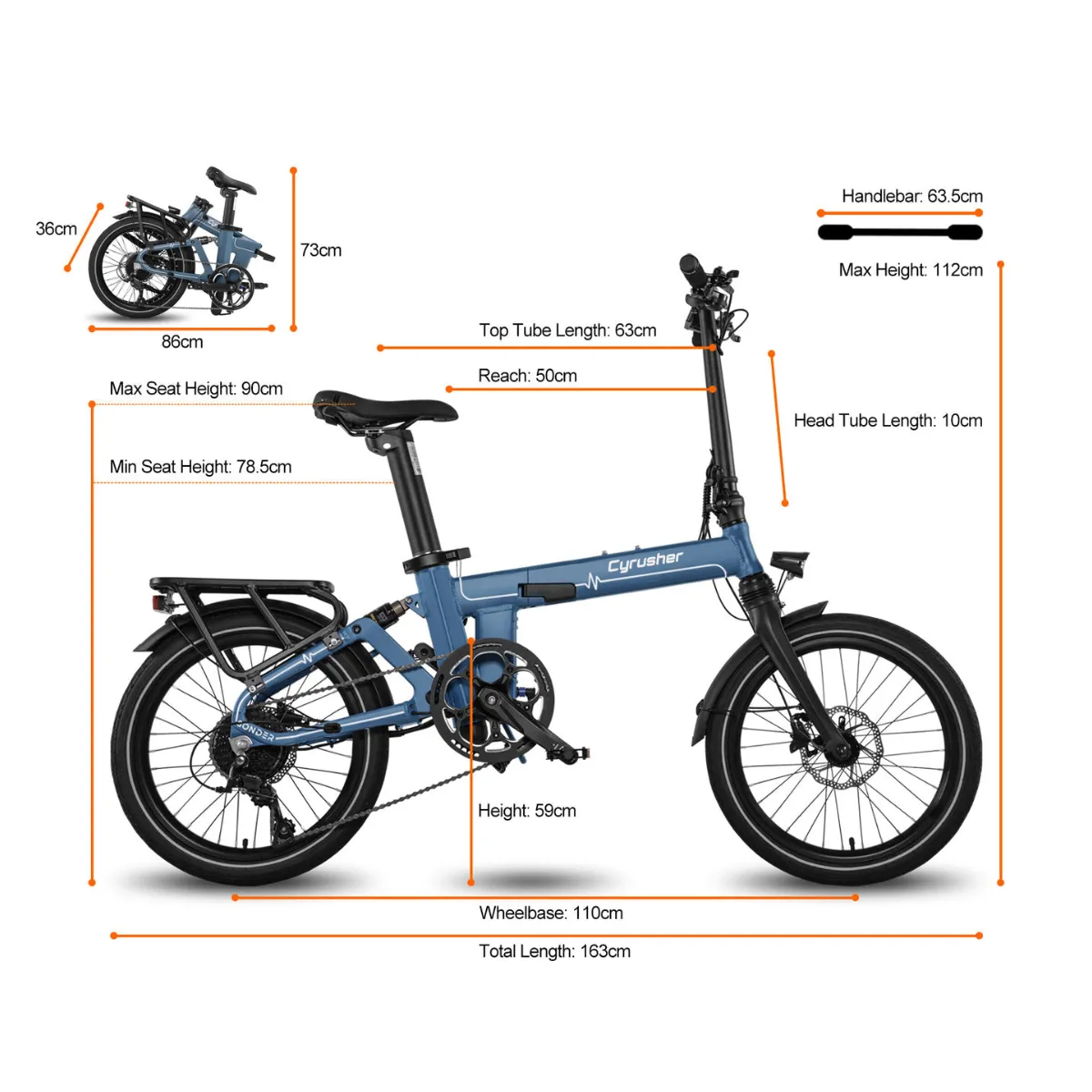 Le Cyrusher Sonder est conçu pour la vie urbaine. Son cadre pliable, léger et compact, vous permet de l'emporter dans les transports en commun, de le ranger sous votre bureau ou dans le coffre de votre voiture : idéal pour vos trajets quotidiens ou vos voyages.
