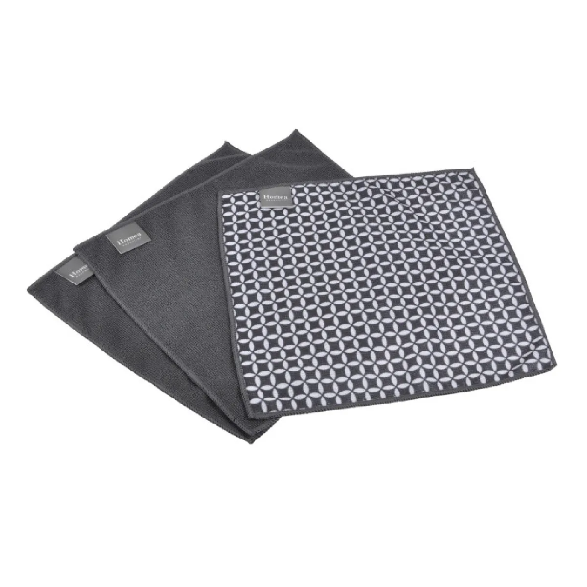 Paris Prix Lot de 3 Chiffons Geoflower 30x30cm Gris & Blanc |
