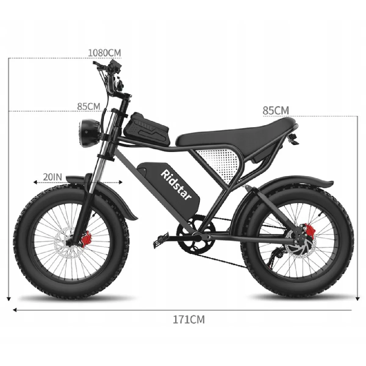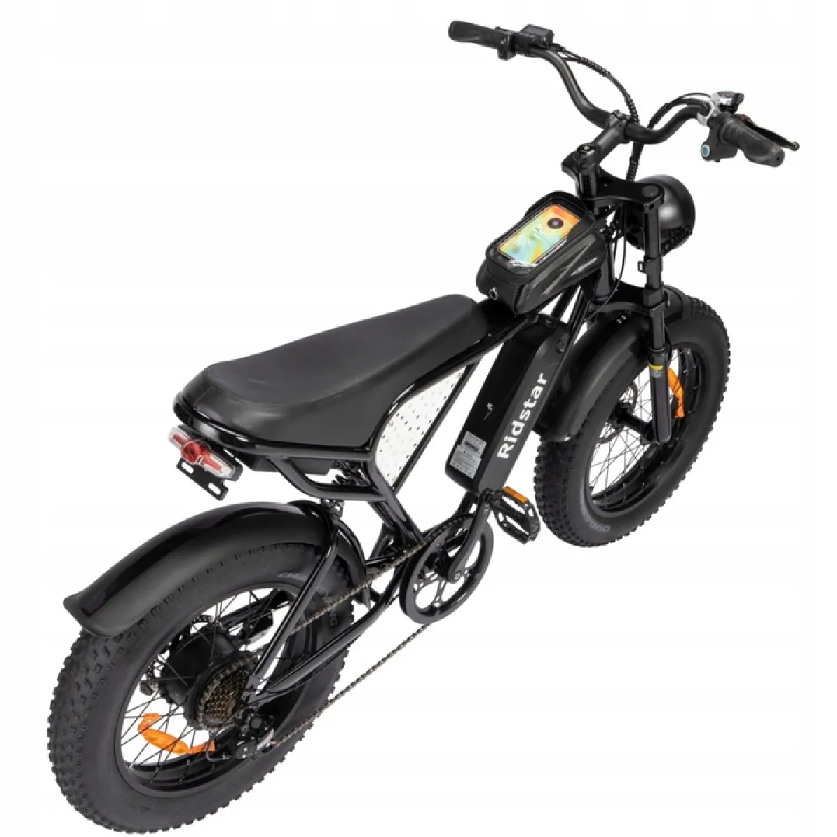 Commentaire vendeur : Découvrez le VÉLO ÉLECTRIQUE Ridstar Q20, votre partenaire idéal pour les aventures en tout terrain ! Equipé d'un puissant moteur brushless de 1000 W (pic 1500 W), il offre une vitesse maximale de 45 km/h et une montée en puissance impressionnante. Sa batterie lithium amovible de 48 V 15 Ah assure une autonomie de 80-100 km (selon le mode), rechargeable en seulement 5-7 heures. Les pneus épais 20×4 pouces s'adaptent à tous les terrains (neige, sable, boue). Doté d'un suspension avant et arrière pour un confort optimal, d'hamacs de freins à disques pour une sécurité maximale et d'un écran LCD intelligent avec chargeur USB, il combine performance, praticité et style. Livré avec un support téléphone et une housse téléphone offerts !