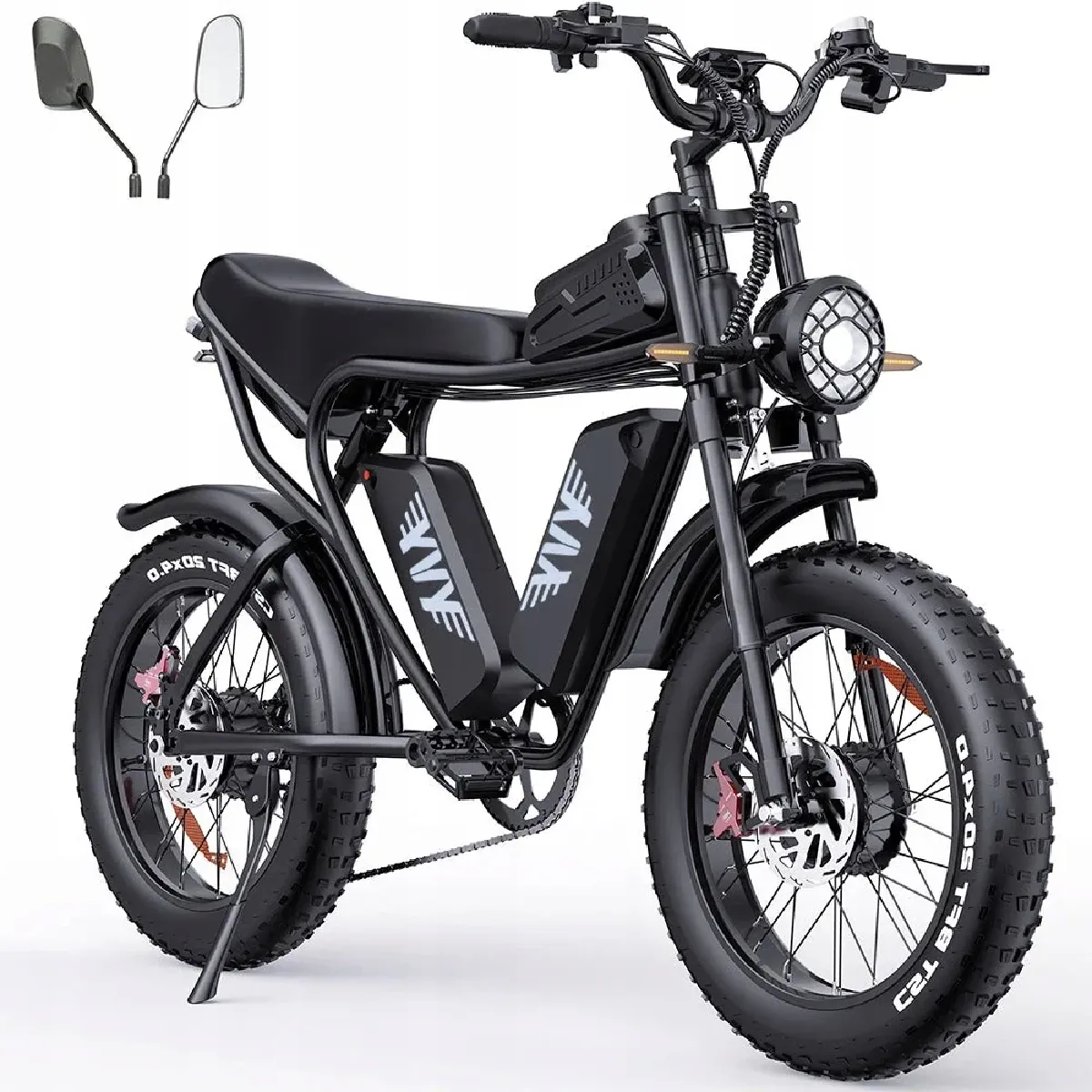 Commentaire vendeur : Le vélo électrique YVY Q20 PRO se démarque par sa puissance et sa polyvalence. Doté d’un système double moteur brushless de 2000W (3000W en pic) et d’une double batterie lithium-ion amovible 52V 40Ah, il offre une autonomie allant jusqu’à 180 km en mode assisté et une vitesse maximale de 55 km/h, grimpant facilement des pentes à 45°. Ses pneus tout-terrain 20×4,0 pouces, sa suspension hydraulique avant et ses freins à disque hydrauliques garantissent stabilité et sécurité sur tous terrains. L’écran LCD, la transmission Shimano 7 vitesses et l’éclairage LED complètent cet équipement haut de gamme, idéal pour les aventures urbaines et outdoor.