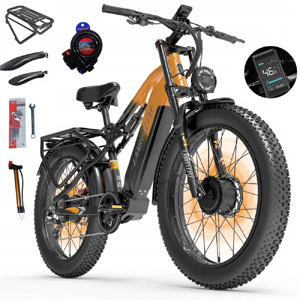 Vélo électrique LANKELEISI MG800 MAX - Double moteur 2000W - samsung batterie 48V 20Ah pneus 20"*4.0 et freins hydrauliques VTT