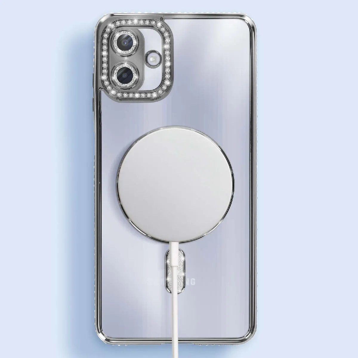 Offrez protection et élégance à votre Galaxy A07 avec cette coque Diamant MagSafe. Conçue avec un contour noir incrusté de strass scintillants et un bloc caméra renforcé, elle allie style et sécurité. Son anneau magnétique intégré permet une compatibilité totale avec les accessoires MagSafe. Transparente, elle met en valeur le design du téléphone tout en le protégeant contre les rayures, chocs et les chutes.
